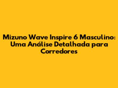 Com sua tecnologia Wave, design funcional e durabilidade, o Mizuno Wave Inspire 6 Masculino é um investimento que vale a pena para corredores que buscam melhorar seu desempenho e evitar lesões. Lembre-se de avaliar sua pisada, escolher o tamanho certo e seguir as dicas de cuidados e manutenção para aproveitar ao máximo seu tênis.