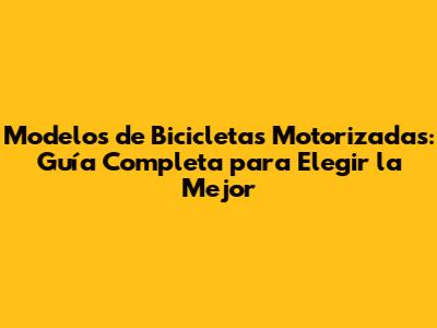 Modelos De Bicicletas Motorizadas: Guía Completa Para Elegir La Mejor