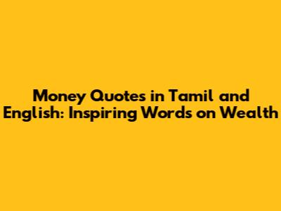Money Quotes: Tamil And English Inspirations