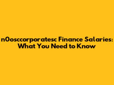 N0osccorporatesc Finance Salaries: What You Need To Know