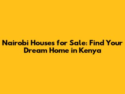 Nairobi Houses For Sale: Find Your Dream Home In Kenya