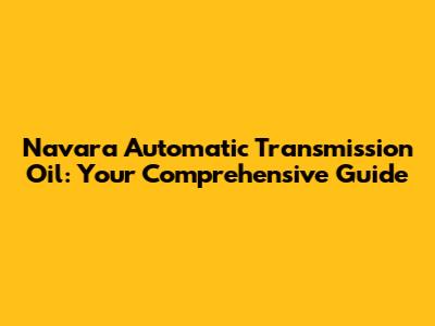 Navara Automatic Transmission Oil: Your Guide