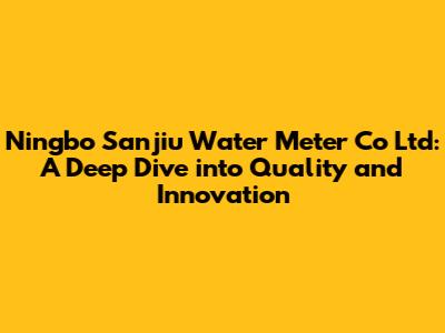 Hey guys! Ever wondered about the unsung heroes of our daily water usage? I'm talking about water meters! And today, we're diving deep into one of the prominent players in this field: Ningbo Sanjiu Water Meter Co Ltd. Let's explore what makes them tick, their products, and why they're a significant name in the industry.
