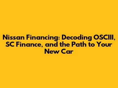 Hey there, car enthusiasts! Let's dive into the world of Nissan financing, specifically focusing on the often-confusing acronyms: OSCIII, SC Finance, and the website in question: osciii nissansc scfinance comsc. If you're scratching your head wondering how to snag that shiny new Nissan, you're in the right place. We'll break down the jargon, explore what these terms mean, and guide you through the process of securing the best financing deal. Getting a new car can be stressful, but understanding the financing options available can make it a much smoother ride. So, buckle up, because we are getting ready to navigate the intricacies of Nissan financing together. Whether you are a first-time car buyer or a seasoned veteran, there is always something new to learn in the complex world of automotive financing. Don’t worry; we are going to break it all down in an easy-to-understand way, from credit scores to interest rates and everything in between. Let's make sure you're well-equipped to make informed decisions and drive off in your dream Nissan. This is all about empowering you with the knowledge you need, so you can make informed decisions. We'll cover everything from application to approval and beyond! Let’s get started, and let’s make sure you get the best deal possible.
