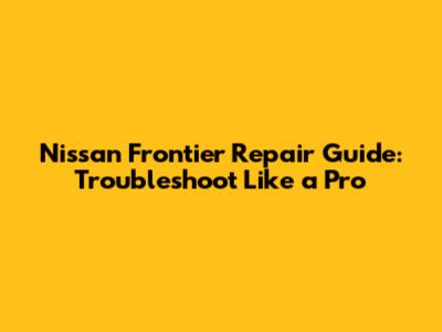 Nissan Frontier Repair Guide: Troubleshoot Like A Pro