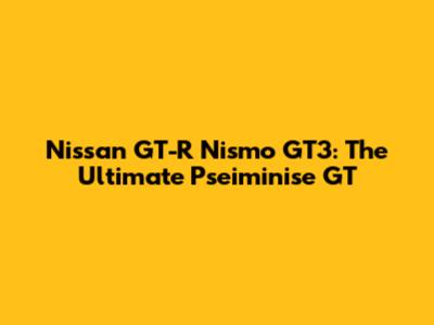 Nissan GT-R Nismo GT3: The Ultimate Pseiminise GT