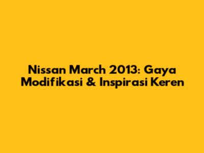 Modifikasi mobil Nissan March 2013 memang seru, guys! Mobil ini punya potensi besar buat tampil beda dan keren di jalanan. Nah, artikel ini bakal kasih kalian inspirasi modifikasi Nissan March 2013, mulai dari yang simpel sampai yang lebih ekstrem. Kita akan bahas berbagai gaya modifikasi, tips memilih aksesori, serta estimasi biaya yang perlu kalian siapkan. Jadi, siap-siap buat bikin Nissan March 2013 kalian jadi pusat perhatian!