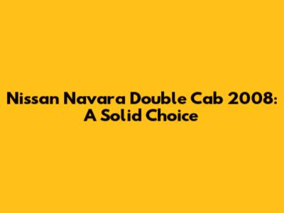 Nissan Navara Double Cab 2008: A Solid Choice