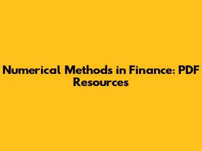 Numerical Methods In Finance: PDF Resources