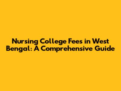 Nursing College Fees In West Bengal: A Comprehensive Guide