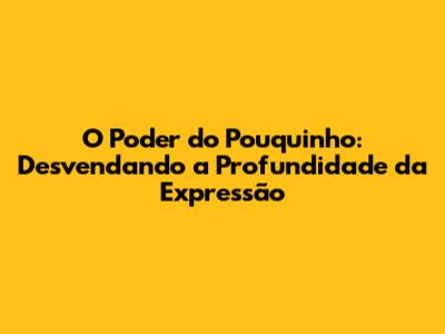O Poder Do Pouquinho: Entendendo Seu Verdadeiro Significado