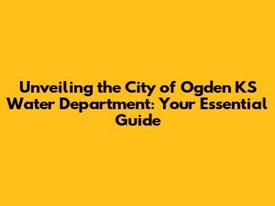 Hey folks! Let's dive deep into the City of Ogden KS Water Department. This isn't just about pipes and water pressure, guys; it's about the lifeblood of our community. Understanding how your water service works, who manages it, and how to get in touch is super important. We're going to break down everything you need to know about the Ogden Water Department, from their daily operations to crucial contact information. Think of this as your friendly, no-nonsense guide to staying informed and connected with the folks who ensure you have clean, reliable water flowing right to your tap. We'll cover what they do, why their work matters, and how you can best interact with them.