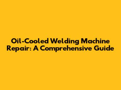 Oil-Cooled Welding Machine Repair: A Comprehensive Guide