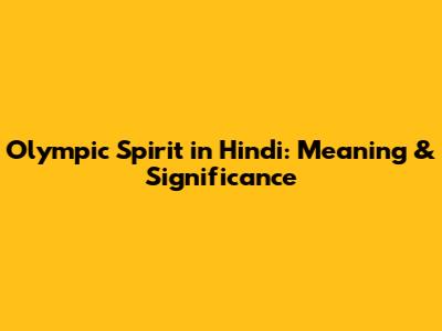 Olympic Spirit In Hindi: Meaning & Significance
