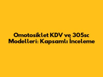Omotosiklet KDV Ve 305sc Modelleri: Kapsamlı İnceleme