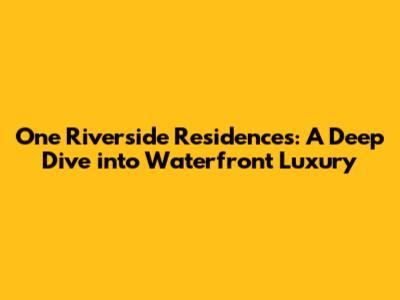 One Riverside Residences: Luxury Living By The Water