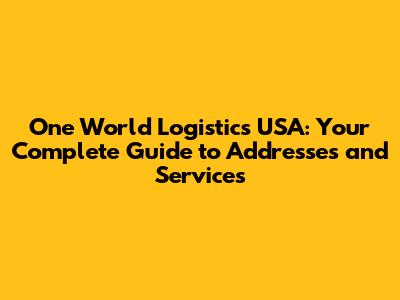 Finding One World Logistics USA: Key Addresses and Locations