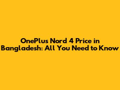 OnePlus Nord 4 Price In Bangladesh: A Complete Guide