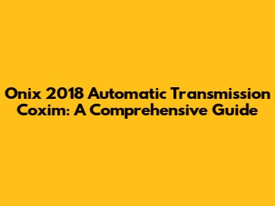 Onix 2018 Automatic Transmission Coxim: Everything You Need To Know