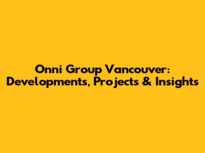 Onni Group Vancouver: Developments, Projects & Insights