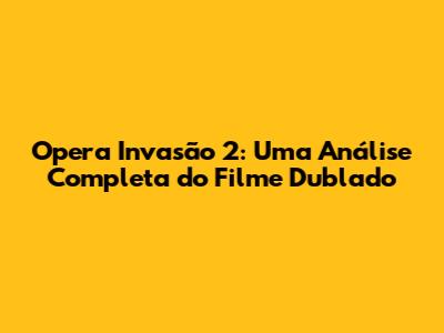 Opera Invasão 2 dublado completo, como um filme de ação e suspense, provavelmente possui uma série de elementos que o tornam atraente para o público. Esses elementos podem variar, mas alguns são comuns em filmes do gênero: