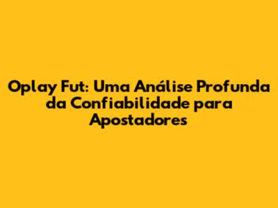 Oplay Fut: Análise Detalhada Da Confiabilidade Em Apostas Esportivas