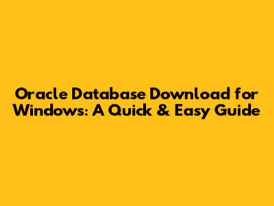Oracle Database Download For Windows: A Quick & Easy Guide