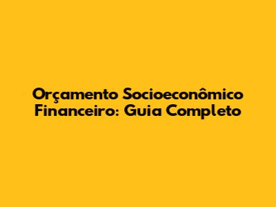 Orçamento Socioeconômico Financeiro: Guia Completo