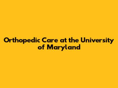 Orthopedic Care At The University Of Maryland