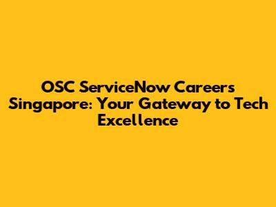 OSC & ServiceNow Careers In Singapore: Your Path To Success
