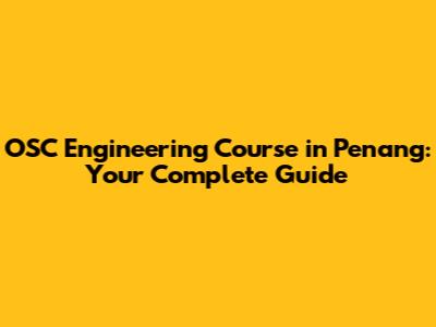OSC Engineering Course In Penang: Your Complete Guide