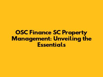 OSC Finance SC Property Management: Expert Insights
