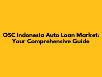 OSC Indonesia Auto Loan Market: Your Comprehensive Guide