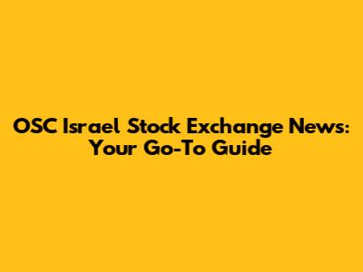 OSC Israel Stock Exchange: Latest News & Insights