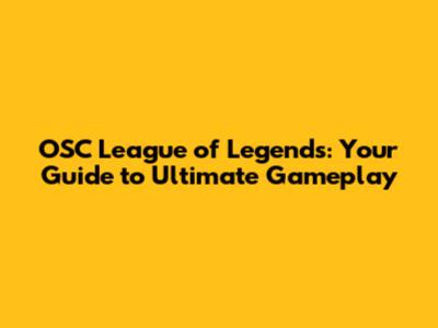 OSC League Of Legends: Your Guide To Ultimate Gameplay