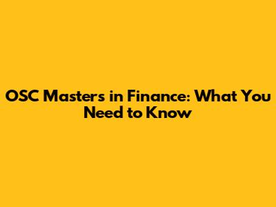 OSC Masters In Finance: What You Need To Know