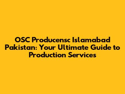 OSC Producensc In Islamabad: Your Complete Guide