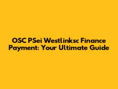 OSC PSei Westlinksc Finance Payment: A Comprehensive Guide