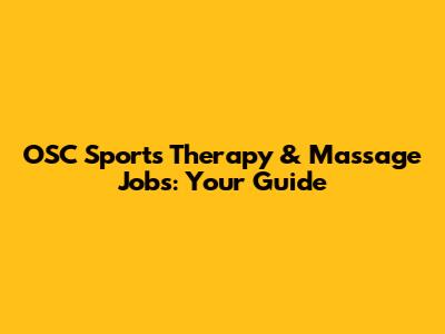 OSC Sports Therapy & Massage Jobs: Your Guide