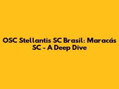 OSC Stellantis SC Brasil: Maracás SC - A Deep Dive