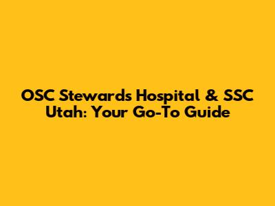 OSC Steward's Hospital & SSC Utah: A Comprehensive Guide