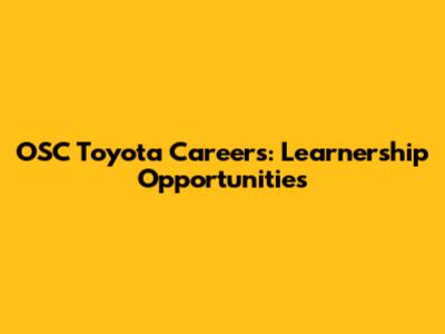 OSC Toyota Careers: Learnership Opportunities