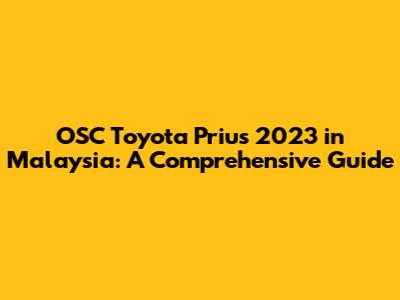OSC Toyota Prius 2023 In Malaysia: A Comprehensive Guide