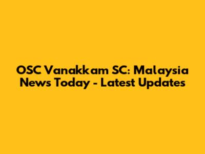 OSC Vanakkam SC: Malaysia News Today - Latest Updates