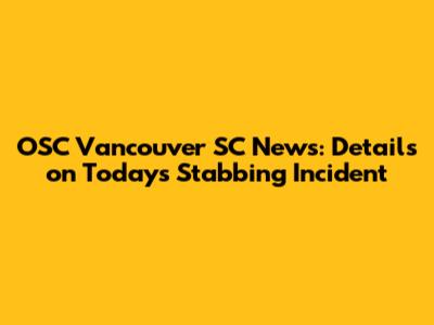 OSC Vancouver SC News: Details On Today's Stabbing Incident