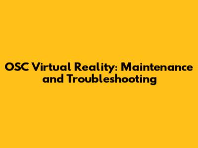 OSC Virtual Reality: Maintenance And Troubleshooting
