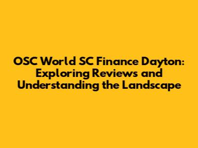 OSC World SC Finance Dayton: Exploring Reviews and Understanding the Landscape