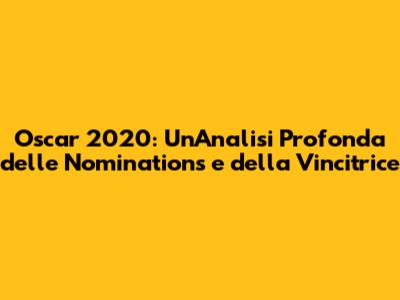 Le attrici nominate hanno dimostrato che il cinema è un'arte senza tempo, capace di superare le barriere linguistiche e culturali, di emozionare e di coinvolgere il pubblico di tutto il mondo. L'Oscar 2020 è stato un omaggio al talento, alla creatività e alla passione per il cinema, un evento che ha celebrato il lavoro di tutti coloro che contribuiscono a rendere il cinema un'arte così speciale e amata. Le attrici nominate, con le loro performance, hanno dimostrato che il cinema è un'arte collettiva, un lavoro di squadra che richiede impegno, passione e dedizione.