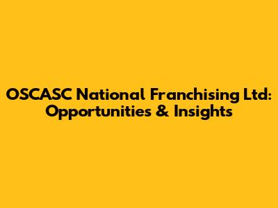 OSCASC National Franchising: Opportunities & Insights