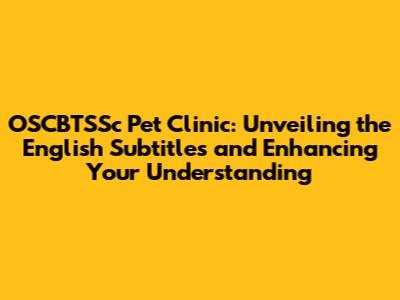 OSCBTSSc Pet Clinic: Unveiling the English Subtitles and Enhancing Your Understanding